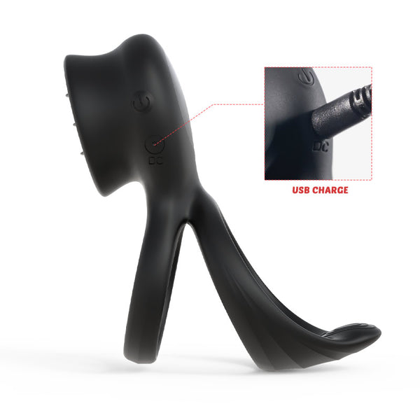 Make shared climaxes a reality with this powerful double cock ring. Wearing it around your shaft and testicles?to maintain?your erection and delay ejaculation. This ring safely traps blood inside the shaft of your penis, making it obvious that your cock becomes bigger, thicker, and stronger. Then you will enjoy the satisfied look of your partner. In addition to making you comfortable, it also can offer an extraordinary experience to your lover. When you choose different modes of vibration, 3 little tongue-like parts will serve as a stimulator for the clitoris during intercourse. Moreover, you can use it as a foreplay teaser to flirt with your partner¡¯s erogenous zones. It is fully waterproof and rechargeable so you can carry and use it easily. If you want to experience terrific mutual pleasure with your partner, don't miss this great love machine.